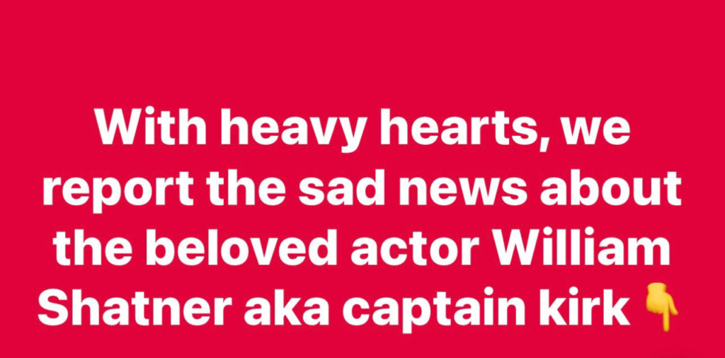 With heavy hearts, we report the sad news about the beloved actor William Shatner