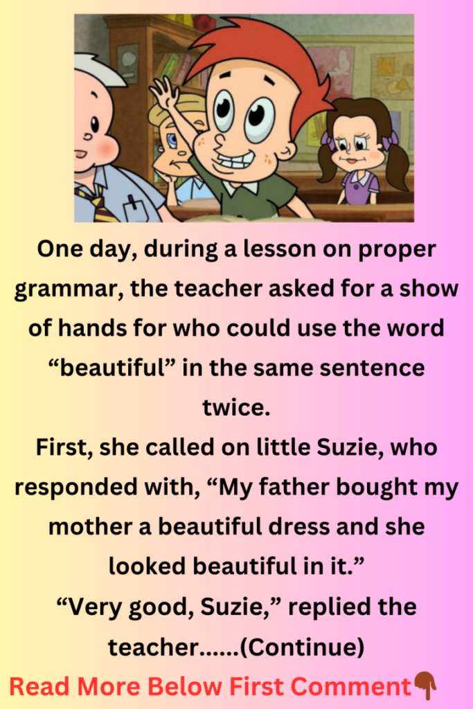 One day, during a lesson on proper grammar, the teacher asked for a show of hands for who could use the word “beautiful” in the same sentence twice.