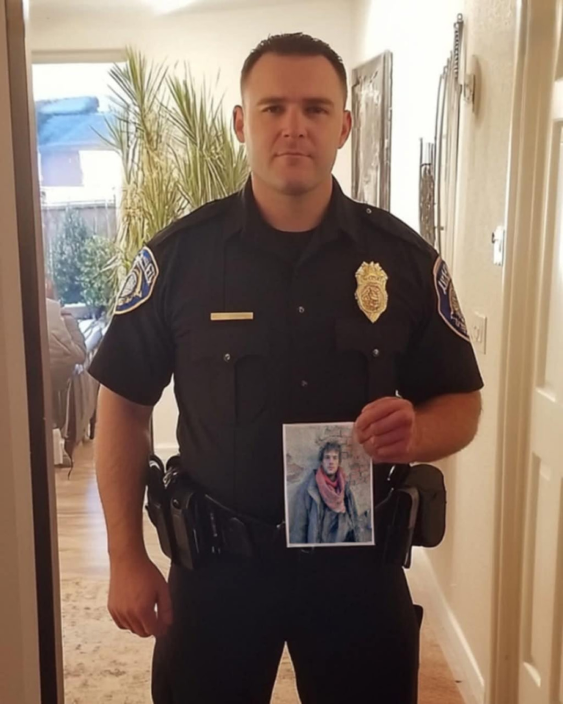For a moment, I hesitated. What if he didn’t want help? What if he was dangerous? But when he looked up, his eyes—dark and hollow—stopped me in my tracks. There was a vulnerability there, something that made me push past my doubts. I crouched beside him, ignoring the cold stone beneath my knees.“Hi,” I said softly. “Can I help with your shoes?”He blinked, surprised, as though he wasn’t used to being noticed. “You don’t have to,” he started.“Let me,” I insisted, my voice kind but firm. I untied the string holding his shoes together, adjusting them the best I could. My fingers stung from the cold, but it didn’t matter.When I finished, I pulled off my favorite gray knit scarf—a gift from my husband, Ben—and draped it over his shoulders.“Here. This will help,” I said.He opened his mouth to protest but stopped. Instead, I hurried across the street to a café, returning moments later with hot soup and tea. He accepted them with trembling hands, and I scribbled my address on a scrap of paper.“If you ever need a place to stay or someone to talk to,” I said, “come find me.”His eyes fixed on the paper, his voice shaky as he asked, “Why? Why are you doing this?”“Because everyone needs someone,” I replied. “And right now, you need someone.”Tears glistened in his eyes. “Thank you,” he whispered.I walked away, glancing back once to see him sipping the soup, huddled against the wind. I never asked his name, never expected to see him again.Ten years passed. Life went on, filled with the usual challenges of family and work. Ben and I celebrated twenty-two years of marriage. Our children, Emily and Caleb, were growing up—Emily preparing for high school graduation, Caleb navigating the chaos of being fourteen.One quiet Tuesday evening, as I sat sorting through bills, there was a knock at the door. My heart raced with panic, thinking of my children.“Good evening, ma’am,” said the officer standing on my porch. “Are you Anna?”“Yes,” I replied, my voice unsteady. “Is something wrong?”He handed me a photograph. “Do you recognize this man?”I gasped. The grainy image was of the young man from the church steps. The shoes, the scarf—it all came rushing back.“Yes,” I whispered. “I remember him. Who is he?”The officer smiled gently. “Ma’am, it’s me.”Stunned, I stared at him. “You?”He nodded, emotion thick in his voice. “You saved me that day.”Memories flooded back. “What happened to you after that? How did you—”He explained. “That day, you gave me more than soup and a scarf. You gave me hope. I took your address to the church pastor, who helped me contact my aunt—she thought I was dead. She took me in. I started rebuilding my life—getting an ID, finding a job, and fighting my way out of addiction.”He paused, eyes shining. “It wasn’t easy, but I kept that scrap of paper and the scarf as reminders of your kindness. Eventually, I joined the police academy. I’ve been an officer for six years, and I’ve spent all that time tracking you down to say thank you.”Tears welled up in my eyes. “I didn’t do anything extraordinary,” I said, my voice quivering.“You did more than you know,” he replied firmly. “You saw me when I felt invisible. That moment gave me the strength to try again.”Overcome with emotion, I stepped forward and embraced him. He hugged me back tightly, his gratitude unmistakable.“Do you still have the scarf?” I asked, managing a smile through my tears.He grinned. “I do. It’s in my drawer at home. I’ll never part with it.”Later that night, I shared the story with Ben. He listened quietly, holding my hand.“You gave him a second chance,” Ben said softly.“No,” I replied, smiling through my tears. “He gave it to himself. I just opened the door.”Sometimes, a small act of kindness—a scarf, a warm meal, a few kind words—can ripple farther than we imagine. And sometimes, those ripples return to remind us that even the smallest gestures can change a life forever.