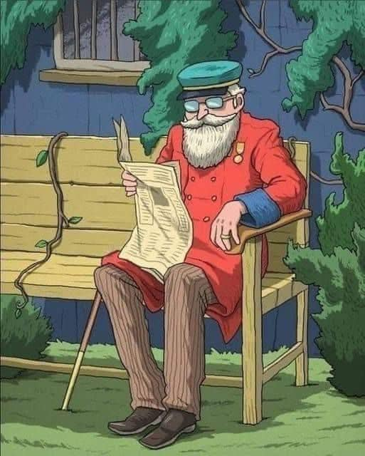 In the image below, you’ll see a senior man seated on a bench outside his home. Somewhere within this picture lies his cherished possession – his pipe!