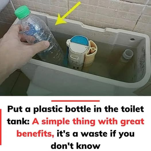 Heat a nail on the tip of the pick and poke a few small holes in the body of the bottle. Then, open the toilet tank lid and place the water bottle in it. Close the tank lid again.