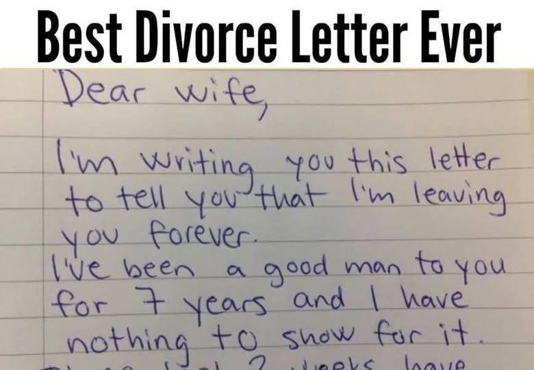 Your letter made my day. Yes, we’ve been married 7 years, but “good man” isn’t how I’d describe you. I watch TV to drown out your complaints. I noticed your haircut but thought you looked like a girl, so I kept quiet. You cooked a meal I don’t eat anymore, and those boxers? I saw the $49.99 tag.
