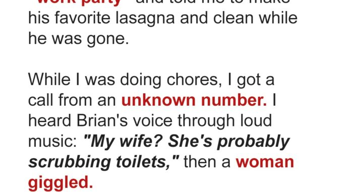 We’d been married for ten years, but I never saw the betrayal coming. It all started when Brian came home one Thursday night, excited about a “work party” the next day. His behavior seemed off, but I didn’t question it. The next morning, he was unusually sweet, asking me to make his favorite lasagna and clean the house. I didn’t think anything was strange—until I got a call that changed everything.