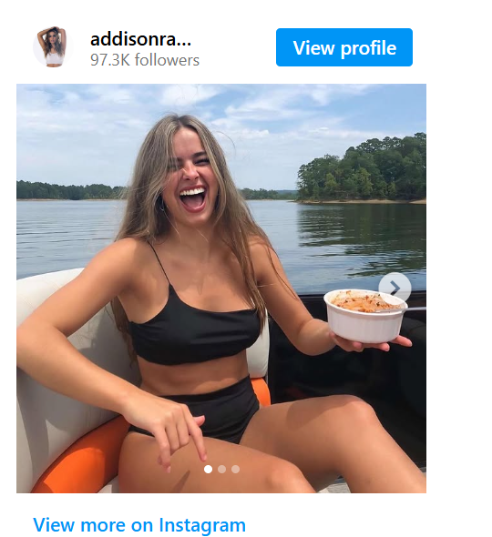 Using a gas station for her shoot’s setting, Addison wowed with a bikini-clad handstand, earning herself over 200,000 likes in just two hours.