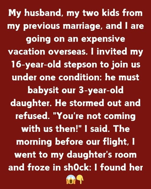 I invited my 16-year-old stepson to join us under one condition: he must babysit our 3-year-old daughter. He stormed out and refused.