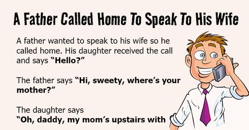 A father wanted to speak to his wife so he called home. His daughter received the call and says “Hello?”