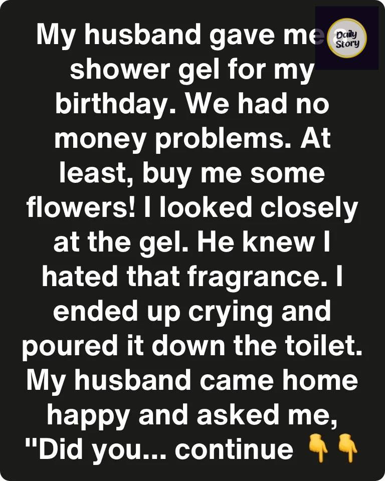 I looked closely at the gel, and he knew that I hated that fragrance. I ended up crying and poured the gel down the toilet.