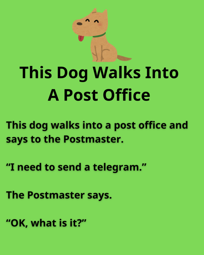 This dog walks into a post office and says to the Postmaster.