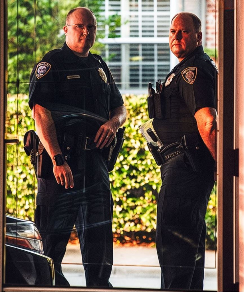 Two officers stood there. “Are you the caretaker of Mrs. Patterson?”