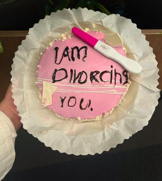 While Emma was at her desk one afternoon, she received an unexpected delivery. Inside a bright pink box was a cake with a chilling message: “I am divorcing you.” Next to it was a positive pregnancy test—one she had forgotten to hide. Her stomach sank. Jake, her husband, must have found it. He believed he couldn’t have children due to infertility, so he must have thought the worst: that she had betrayed him.