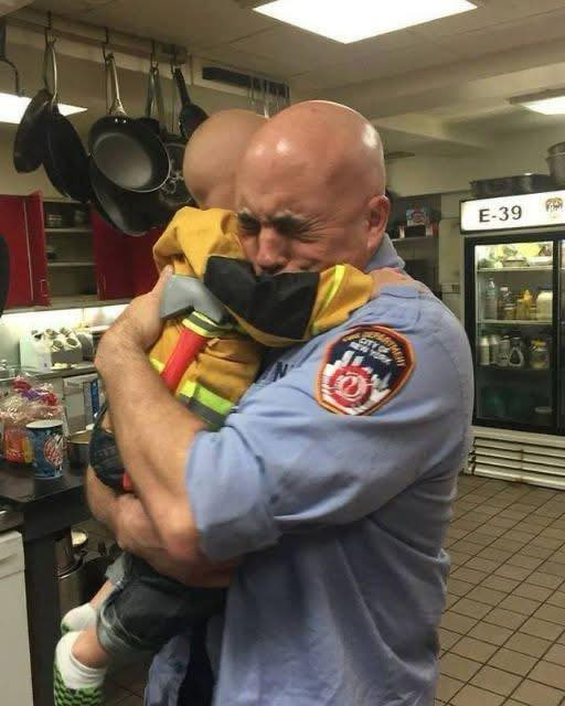 When Micah revealed his dad’s name, the firefighter started crying even harder and embraced him in a hug. “Your dad was my friend. He truly was a hero,” the firefighter said.