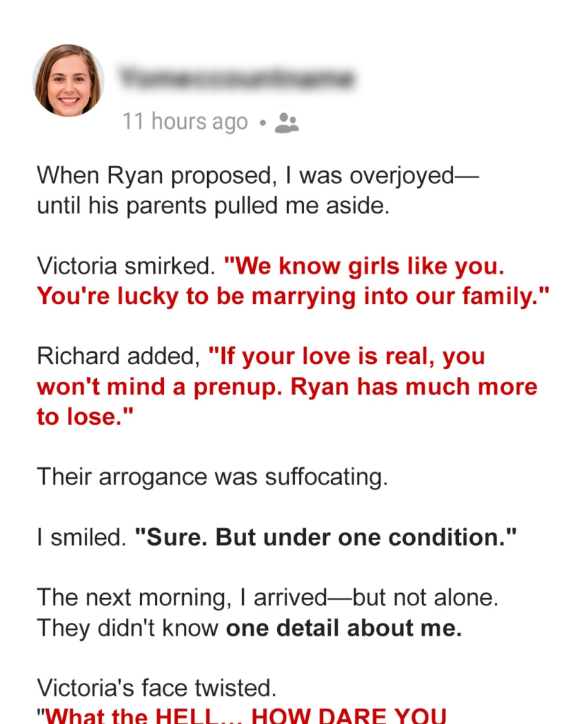 I never thought love could turn into a battlefield so quickly. One moment, you’re planning a wedding with the man of your dreams, and the next, you’re sitting across from his parents as they try to strip you of your dignity—all while smiling politely.