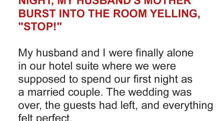 On our wedding night, just as my husband and I lay together, the door slammed open, and his mother burst in, breathless and shaking. “STOP!” she cried, her voice trembling with urgency.