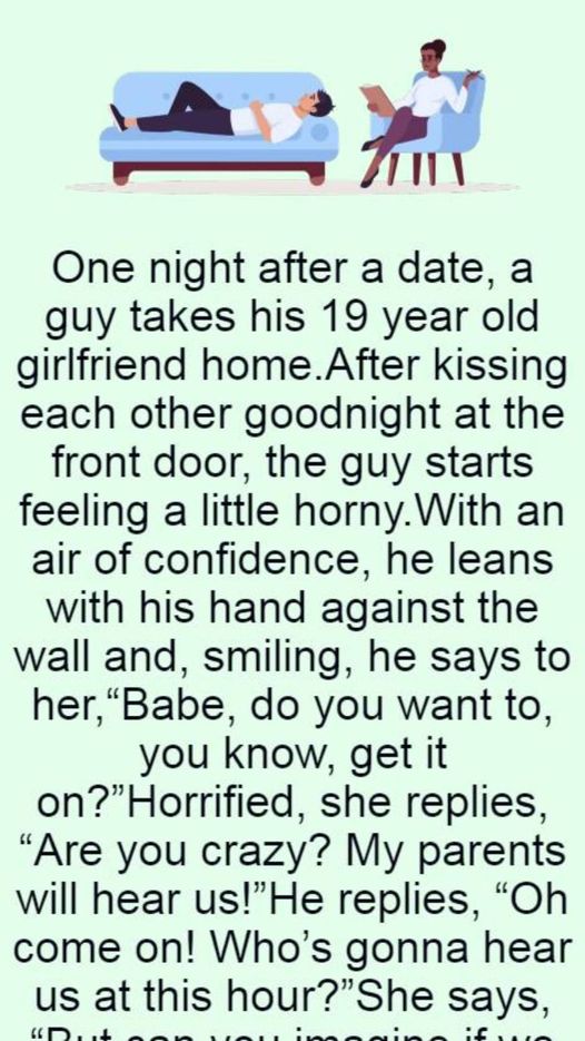 nce upon a time, there was a young couple who had just returned from a fantastic date. The guy dropped off his 19-year-old girlfriend at her house, and they exchanged sweet goodnight kisses at the front door. However, as they said their goodbyes, the guy’s desire started to overwhelm him.