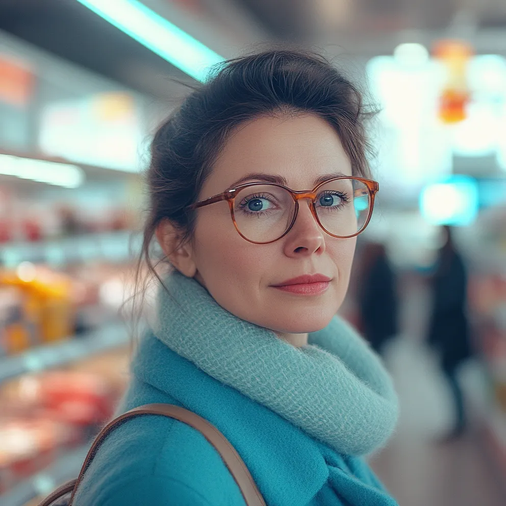 Her lips parted as if she was about to say something, but she hesitated. She glanced around the aisle, clearly nervous.