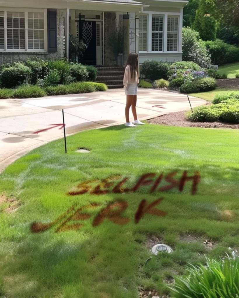 One morning, Brian found Tim’s truck blocking his driveway, despite their conversation. Confronting him, Brian demanded he move it, but Tim brushed it off. Over the next week, Tim continued parking there, leaving vehicles and equipment in Brian’s space. Frustrated, Brian considered calling the homeowners’ association, but before he could, Tim escalated things—spray-painting “SELFISH JERK” across Brian’s lawn.