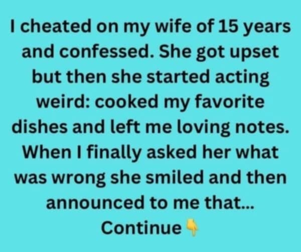 Sean wrote, “3 weeks after I confessed to her about my infidelity, my wife suddenly started behaving in a very strange way. She called me and asked me to take my things and move back into our house, which I happily did. She said she wanted to try to work us out, and she instantly jumped in, being the best wife a man can ask for.
