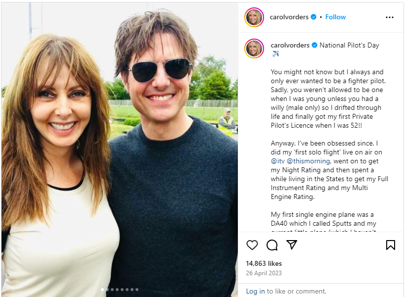 When she’s not on TV, working out, flying a plane or having photos taken with Tom Cruise, Vorderman can be found with one of her five “special friends.”