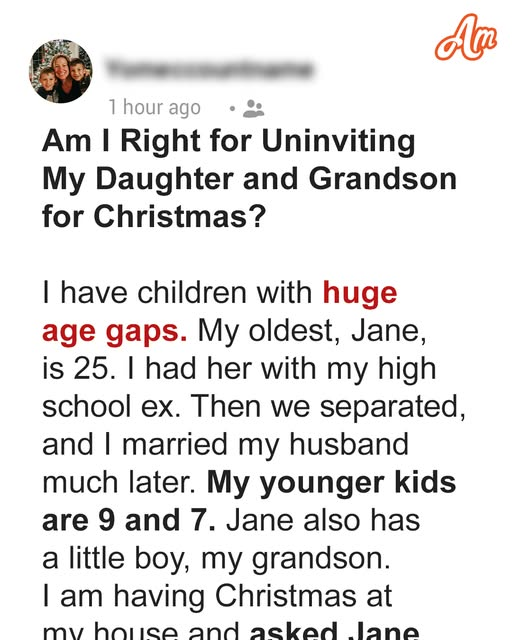 Rebecca’s love for Christmas is all about family and tradition. But this year, a simple request to her eldest daughter, Jane, spirals into an unexpected feud. Rebecca’s younger children, Emma and Noah, still believe in Santa, while Jane has chosen to raise her son, Liam, without the magic. Two days before Christmas, Rebecca asks Jane not to let Liam spoil the magic for her younger kids, hoping he won’t ruin their last Christmas believing in Santa. Jane refuses, and tensions rise, with Rebecca feeling disrespected by her daughter’s refusal to accommodate her wishes.