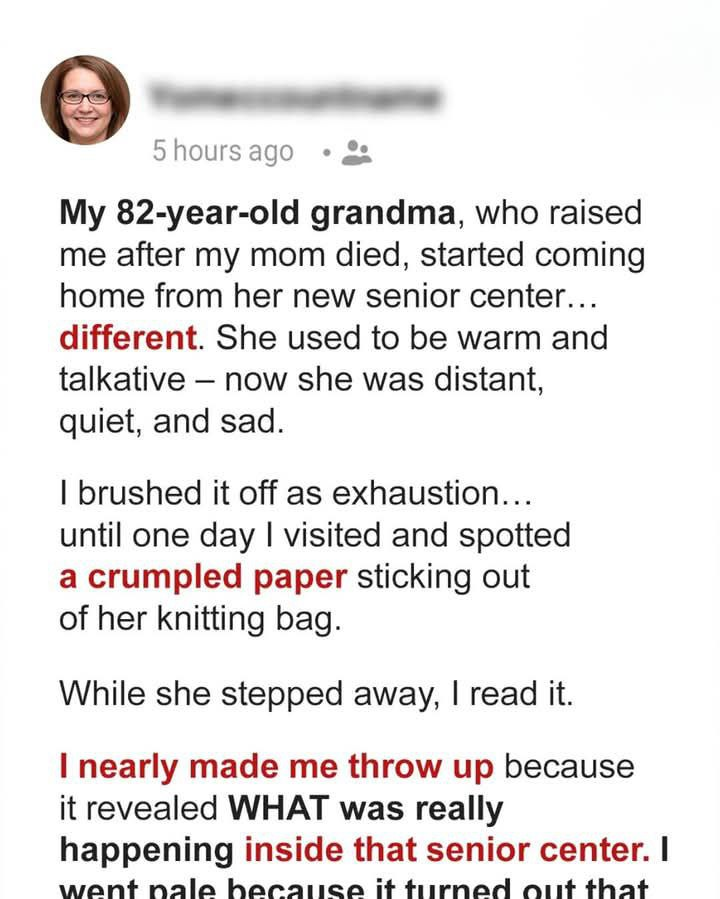 I thought I was doing the right thing when I signed my Grandma Rosie up for a nearby senior center. It seemed warm and friendly, and she was excited at first—jazz nights, crafts, even tai chi. But weeks later, she grew distant. She stopped calling, stopped smiling, and started saying things like, “Old people are just baggage.” That wasn’t my Grandma. She raised me after my mom died—taught me everything from braiding my hair to checking my oil. We were inseparable.
