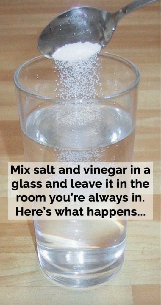 After placing a glass of this vinegar and salt solution in a room, you may notice an improvement in air quality within just a few hours.