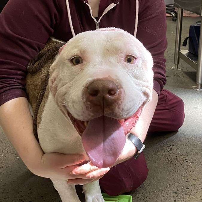 Meet Willy Wonka — a bubbly 2-year-old pit bull whose world changed when an unfortunate accident caused him to lose his ears.