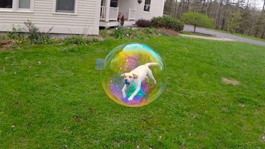 Don’t worry, that tiny dog isn’t trapped inside a bubble. It’s just another fantastic accidental illusion created by perfect timing and a camera. It would be pretty cool to have tiny bubble dogs, though.