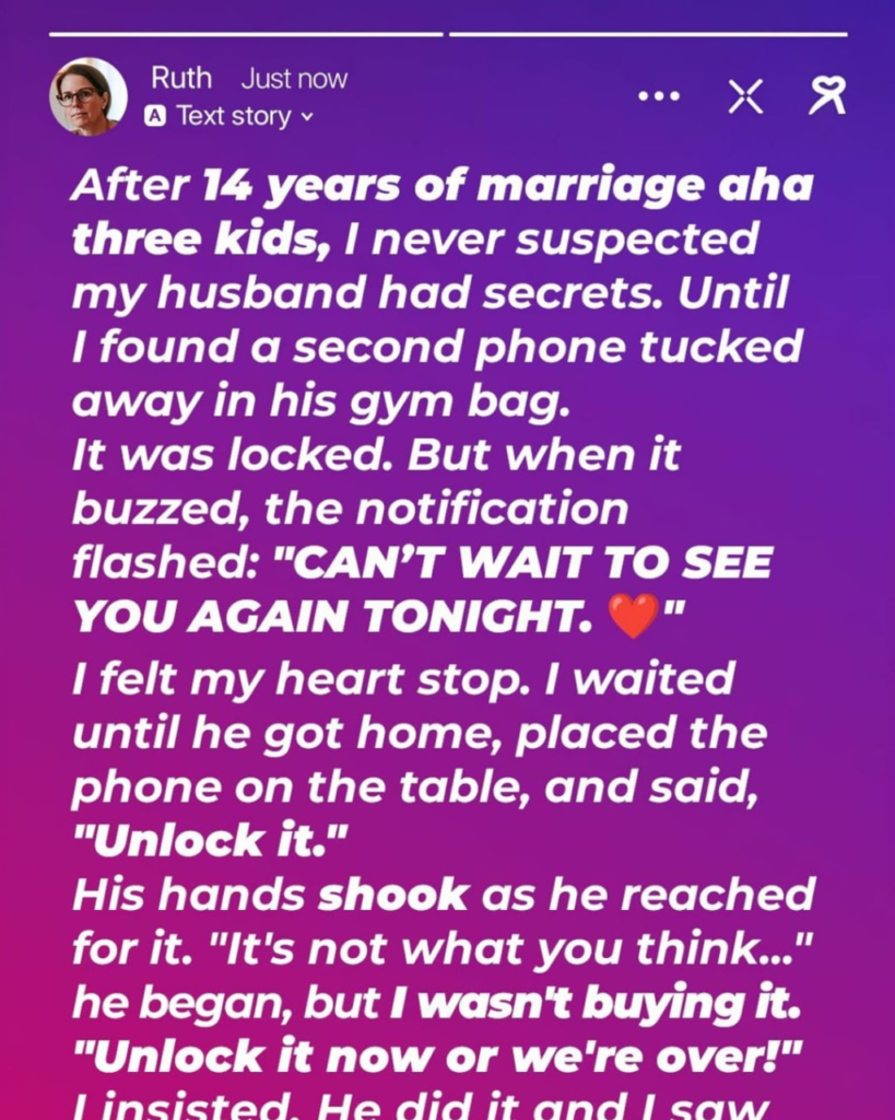 Helena never doubted her husband Chad—until the day she found a second phone hidden in his gym bag. The message on the screen sent her world into a tailspin: