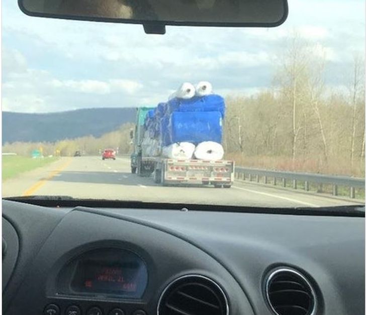 “This truck carrying rolls of plastic looks like Cookie Monster.”