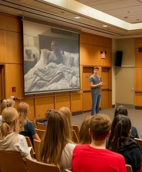I sat frozen, mortification setting in as the clip ended and a series of text messages between Mark and me appeared, clearly showing his methodical planting of this fictional memory. The room was silent, save for the clicking of students typing notes. This wasn’t just a lecture; it was my personal life turned into a case study without my consent.