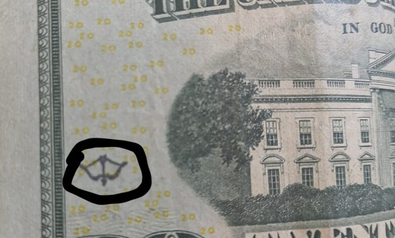 - Special symbols such as one of a bow and arrow, as on a $20 bill recently