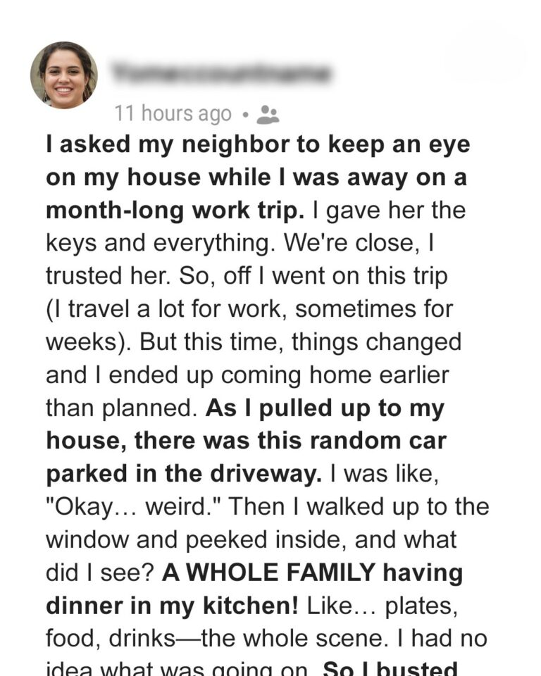 I trusted my neighbor Lisa to watch my house while I was away on a month-long business trip. She watered plants, collected mail, and kept things running smoothly. But when my career suddenly fell apart and I returned home early, I found strangers living in my house — a family renting it through a vacation site.