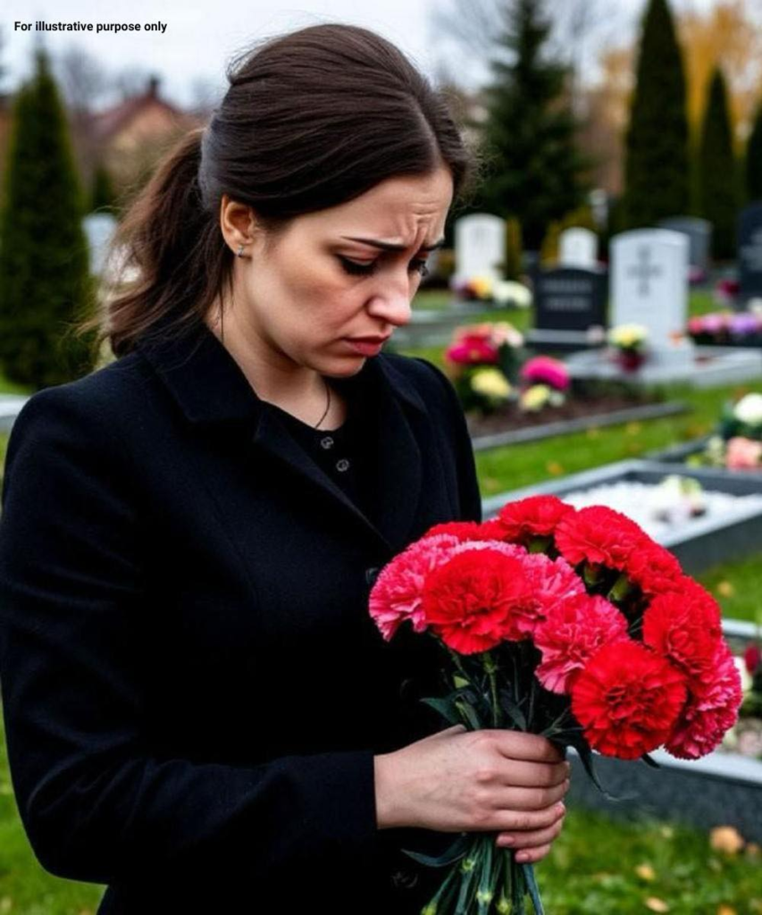Maria stands motionless, looking at the fresh mound, as if she is looking not at the ground, but at the emptiness that is now inside. No tears, no screams – only a heavy numbness, as if part of the heart was torn out, and the rest was left open.