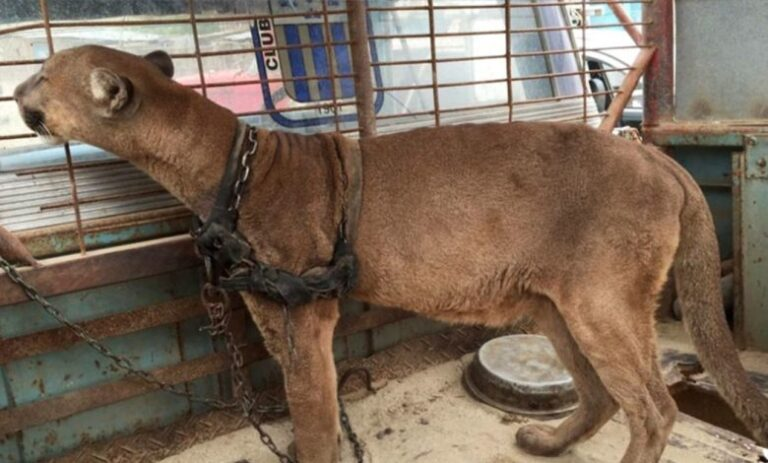 The mountain lion Mufasa was found chained up on the of a pickup truck in Peru. He had lived there for 20 years, forced into a life he neither wanted nor deserved.