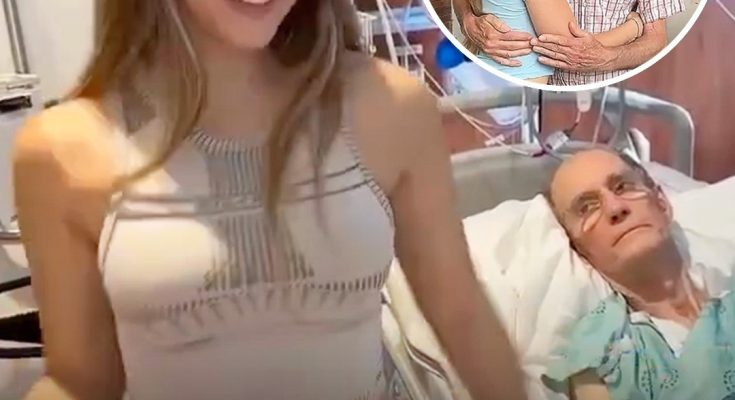A young model has come under fire for posting a controversial video in which she dances gleefully next to her elderly boyfriend’s hospital bed, seemingly celebrating her inclusion in his will.