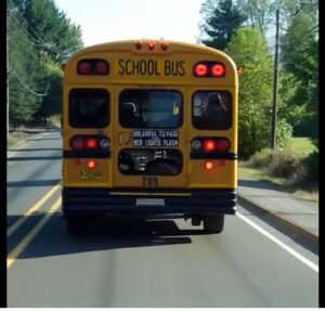 inside I felt shattered. Then, a yellow school bus rolled past. At the back window, a little girl was banging and yelling for help.