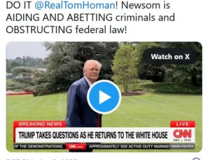 While Trump’s remark was clearly meant to be provocative, it underscores the escalating tension between federal and state authorities when it comes to immigration policy — particularly in California, where Democratic leaders have openly defied Trump-era enforcement tactics.