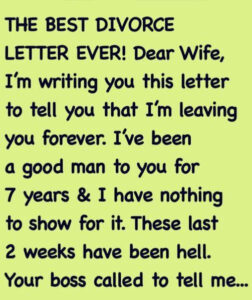 I’m writing to let you know that I’m leaving you for good. I’ve tried to be a good husband for our 7 years of marriage, but I have nothing to show for it.