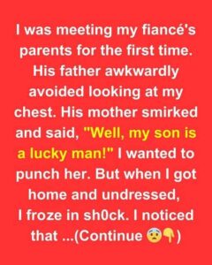 I was meeting my fiancé’s parents for the very first time. His father awkwardly avoided eye contact, especially glancing near my chest. His mother gave me a smirk and said, “Well, my son is a lucky man!” I wanted to disappear on the spot. But it wasn’t until I got home and undressed that I…