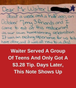 The standard tipping guideline is 15-20 percent of the pre-tax bill. Recently, one waiter was surprised when he received a tip far below that amount after a pleasant interaction with four teenagers. What he didn’t expect, however, was what happened a week and a half later.