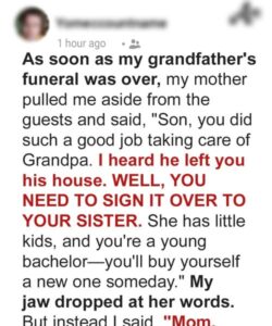So when Mom and Daphne barged in to claim it, I stood firm. “No. This house is mine—and Grandpa wanted it that way.”