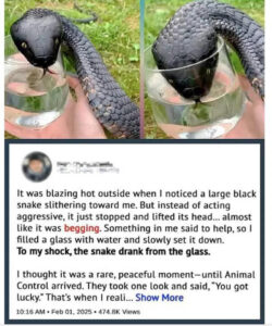 Jake’s peaceful day at the lake took a strange turn when a wild snake unexpectedly slithered toward him. At first, he assumed it was curious—but its behavior was odd. The snake paused just a few feet away, calm and unthreatening, almost as if it was trying to communicate. Jake, unsure what to do, called animal control.