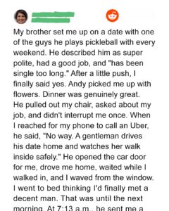 When my brother set me up with Andy, I didn’t expect sparks—but I didn’t expect an invoice either. He showed up with flowers, opened the car door, and played the part of a gentleman so well I almost believed it. Over dinner, he was attentive, funny, even charming. I broke my usual rule and let him drive me home. It felt like a promising first date… until the next morning.