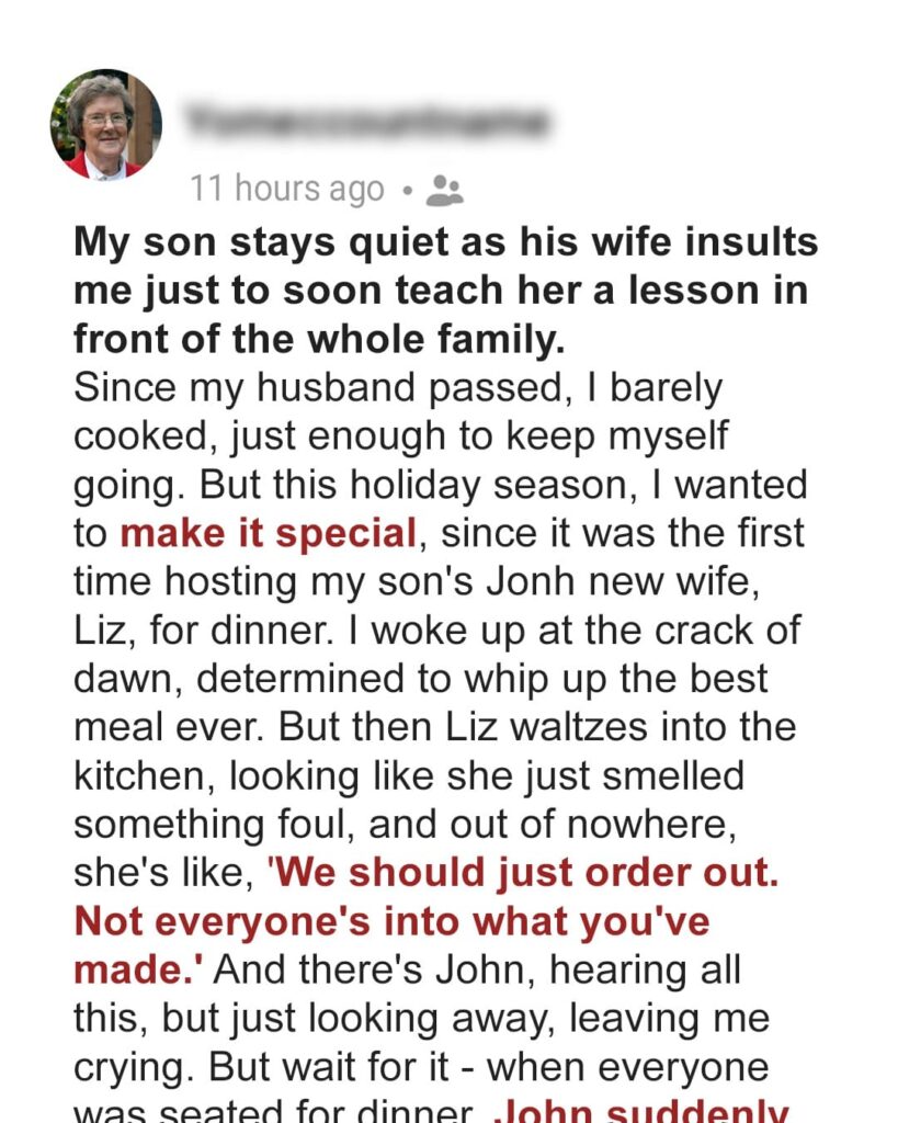 My Son Stays Quiet as His Wife Insults Me — But He Soon Teaches Her a Lesson in Front of Guests