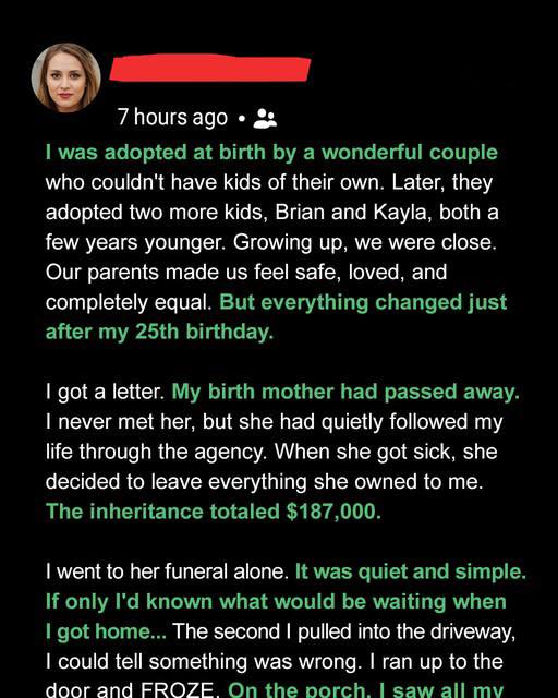 My birth mother, Alina Rodriguez, had died. I’d never met her—but she left me everything: a house, savings, and $65,000 in life insurance. She’d followed my life through agency updates and was proud of me.