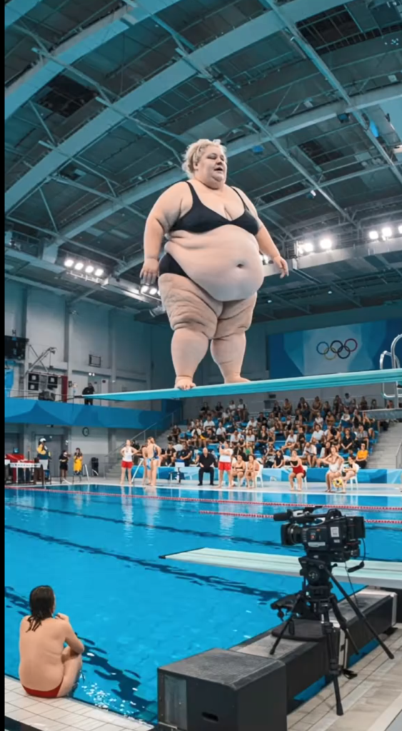 Her body hits the water with power, shattering the stillness of the surface. Ripples explode around her, mixing with laughter and the refreshing rush of summer. It’s a small moment, but it’s full of life, energy, and courage. Because sometimes, all it takes is one jump — to feel truly alive.