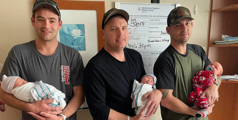 Three firefighters stationed at Fort Belvoir Fire and Emergency Services in Fredericksburg, Virginia, are celebrating a remarkable coincidence: they all became fathers to baby boys within a day of each other. Kyle Dean, one of the new dads, shared their excitement, saying, “All of our doctors at Spotsylvania Regional are really nice, and the nurses have been very kind and caring. They make you feel like they really care about you. Everyone who comes into the room, whether it’s the cleaning staff, nurses, or NICU staff, is great.”