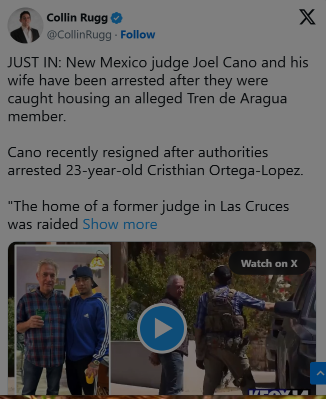 Former Doña Ana County Magistrate Judge Joel Cano and his wife, Nancy Cano, were arrested after a federal raid on their Las Cruces home. They are charged with evidence tampering for allegedly harboring Cristhian Ortega-Lopez, an undocumented immigrant linked to Venezuela’s Tren de Aragua gang.
