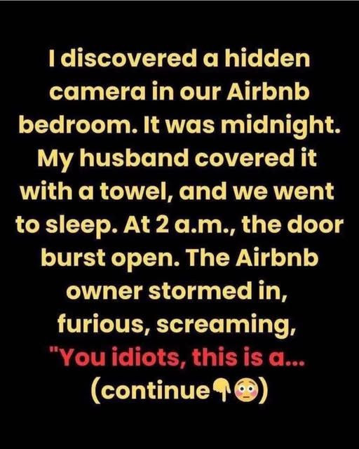 At 2 a.m., the door burst open. The Airbnb owner stormed in, furious, screaming, “You idiots, this is a camera to see the outside! Why have you covered it?”