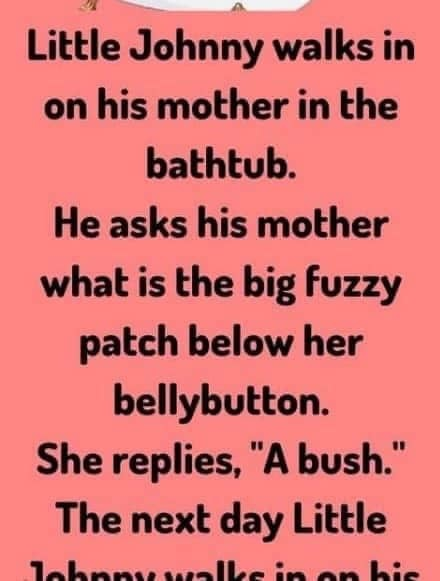 One afternoon, while Johnny’s mom was relaxing in a warm bath, little Johnny suddenly walked into the bathroom. His eyes filled with curiosity as he noticed something unusual on her body.